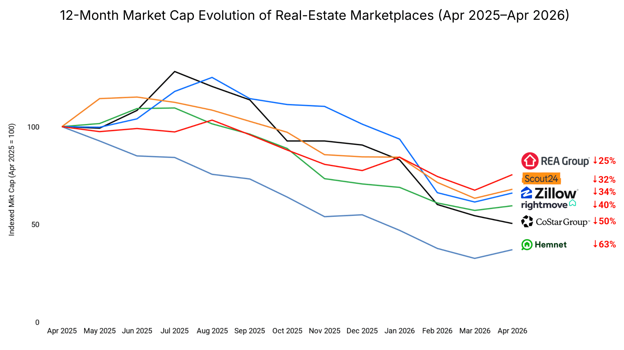 Our earlier article on Why property portals are such great businesses (September 2025) made the case that subscription portals such as Rightmove, REA and ImmoScout24 are some of the most defensible digital businesses ever built; that case has not changed. Rightmove still commands roughly 80% of UK property search time. Hemnet still reaches close to 90% of all Swedish property sellers. The structural advantages are intact.